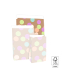 Voor grotere geschenken zijn de blokbodemzakken Big Confetti Camel in large formaat 27 x 15 x 34 cm ideaal. Het vrolijke confettidesign met stippen in meerdere kleuren op een camel ondergrond geeft een feestelijke en opvallende uitstraling. De royale blokbodem zorgt dat de zak stevig blijft staan en de 4 cm sluitflap sluit eenvoudig met een sticker of officeclip. Gemaakt van FSC® gecertificeerd papier voor een duurzame en hoogwaardige verpakking. Perfect voor winkels en webshops die een vrolijke en feestelijke presentatie willen bieden voor grotere cadeaus.