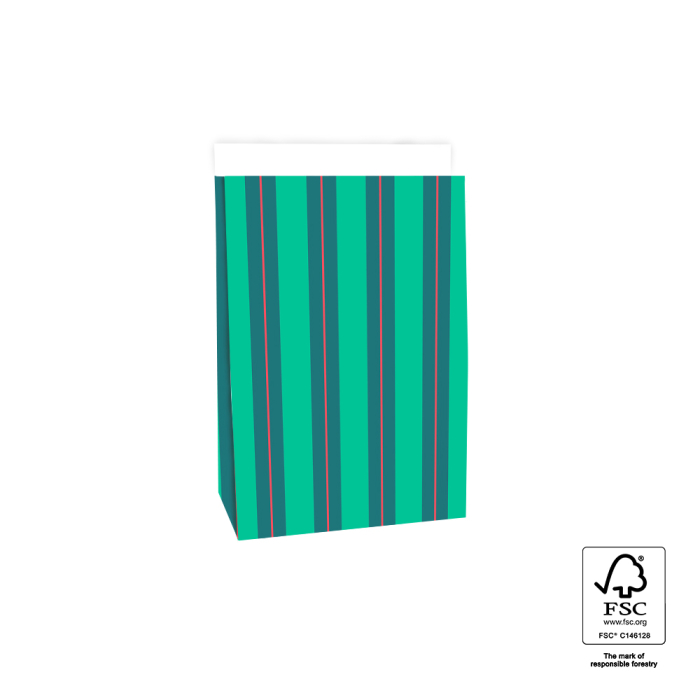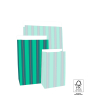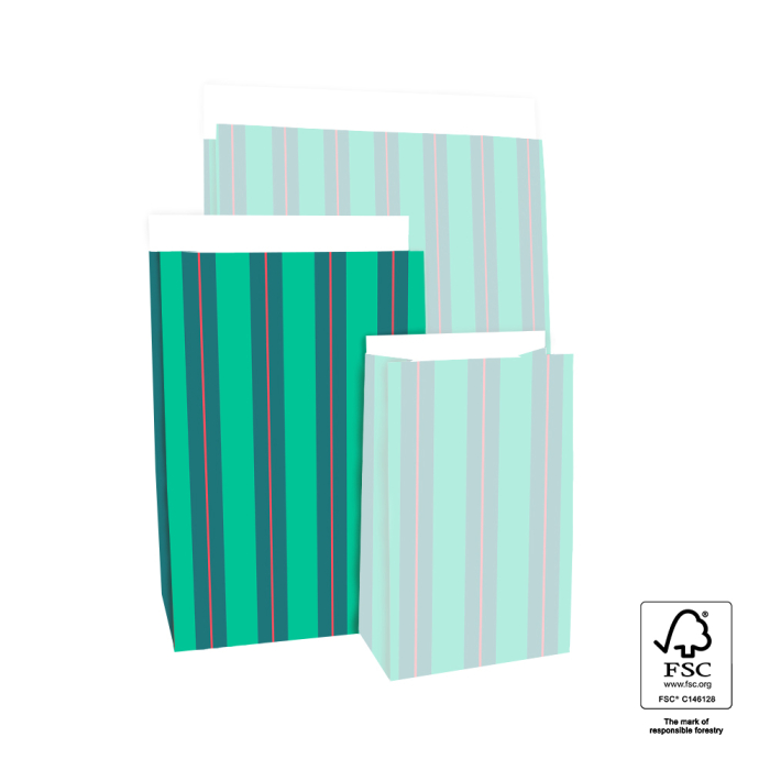 Voor grotere cadeaus zijn onze medium Stripe Chalk Green blokbodemzakken perfect. De sluitflap van 3 cm sluit makkelijk met sticker of paperclip. FSC® gecertificeerd.
