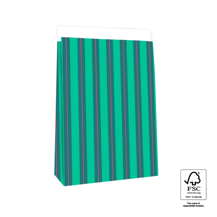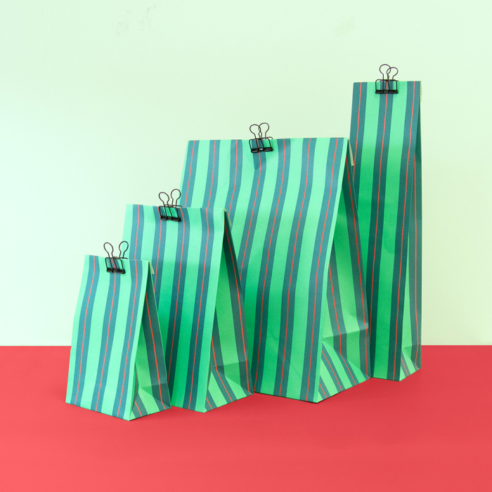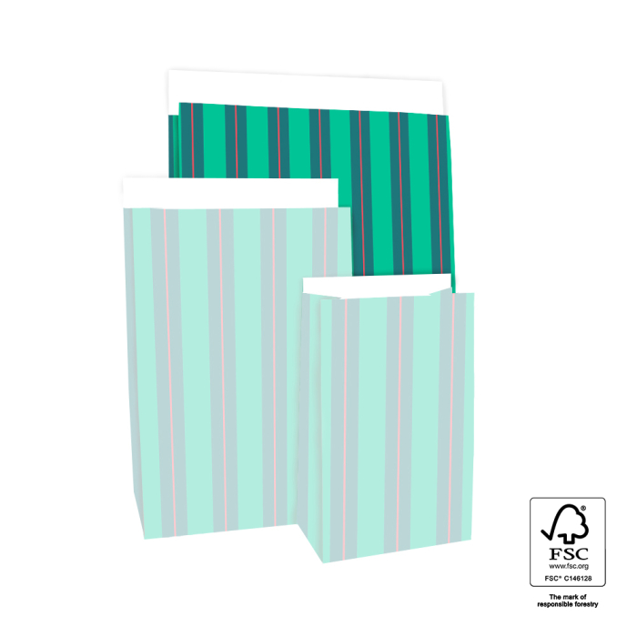 De grote Stripe Chalk Green blokbodemzakken bieden voldoende ruimte en een stijlvolle uitstraling. Sluit eenvoudig met de 4 cm flap. FSC® gecertificeerd.