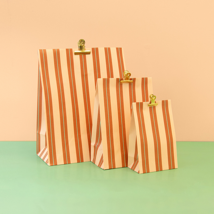 Maak het inpakken stijlvol met onze Stripe Chalk Peach blokbodemzakken. Ideaal voor snel en eenvoudig cadeauverpakken. De 2 cm sluitflap sluit makkelijk met sticker of paperclip. FSC® gecertificeerd voor kwaliteit en duurzaamheid.
