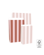 Pak cadeaus in met een warme, moderne look dankzij onze blokbodemzakken - Stripe Chalk Terra, medium (17 x 10 x 25 cm). De krijtstrepen in combinatie met de terra-kleur creëren een eigentijdse uitstraling die perfect past bij ieder seizoen. De brede blokbodem biedt genoeg ruimte voor middelgrote cadeaus, terwijl de 3 cm sluitflap eenvoudig af te sluiten is met een sticker of officeclip. De zakken zijn gemaakt van FSC® gecertificeerd papier, waardoor je kiest voor een duurzame én stijlvolle cadeauverpakking.