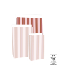 Voor grotere cadeaus is er onze blokbodemzak - Stripe Chalk Terra, large (27 x 15 x 34 cm). Het warme terra-ontwerp met krijtstrepen geeft elk cadeau een stijlvolle, natuurlijke uitstraling. Dankzij de royale blokbodem blijft de zak stevig staan en kun je ook grotere items makkelijk kwijt. De 4 cm sluitflap sluit je eenvoudig met een sticker of officeclip. Gemaakt van FSC® gecertificeerd papier, zodat je kiest voor een luxe én duurzame cadeauverpakking. Perfect voor winkels en webshops die kwaliteit willen uitstralen.