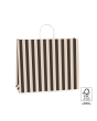 Stevige FSC® gecertificeerde papieren tassen met twist-cord in zwart/beige streep. De tassen zijn leverbaar in 4 formaten, deze de grootste is. Maak deze duurzame draagtassen persoonlijk met een sticker of cadeaulabel aan het handvat.