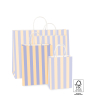 Stevige bedrukte FSC® gecertificeerde papieren tassen met twist-cord. Bedrukt met een brede streep in blauw en peach. De tassen zijn leverbaar in 4 formaten, waarvan deze de een na kleinste is. Maak deze universele en duurzame draagtassen persoonlijk met een sticker op de tas of cadeaulabel aan het handvat.