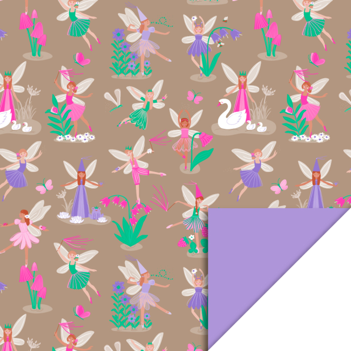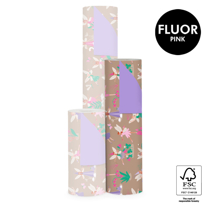 Betover je klanten met onze toonbankrol inpakpapier van House of Products! Speciaal ontworpen voor meisjes tot 12 jaar, met elfjes, roze en paarse details en bloemen op een taupe kleurige achtergrond. Deze 150 meter rol is perfect voor winkeliers die streven naar kwaliteit en duurzaamheid. De paarse achterzijde voegt een vleugje magie toe aan het inpakproces. FSC®-gecertificeerd en milieuvriendelijk. Bestel vandaag nog bij House of Products en geef je cadeauverpakking een betoverend tintje!