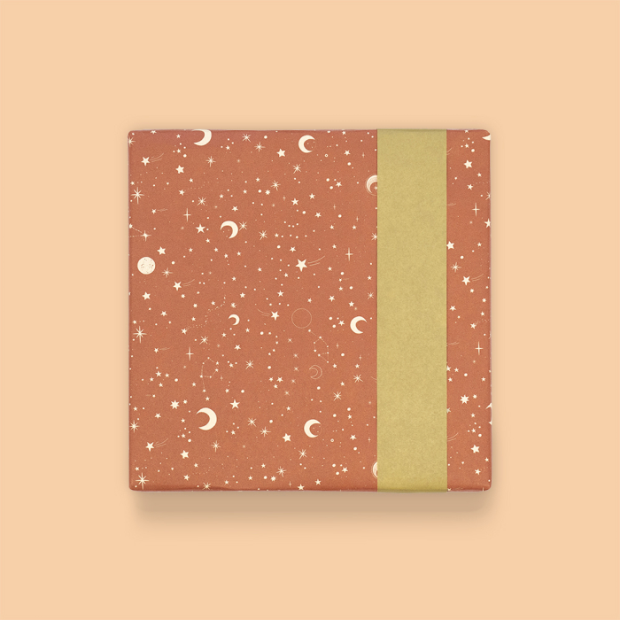 Op zoek naar warm en sfeervol inpakpapier? Deze toonbankrol van House of Products heeft een prachtig sterrenhemel-dessin in cognac met pastel oranje sterren en een maan. De gouden achterzijde zorgt voor een luxe uitstraling, perfect voor feestdagen of speciale momenten. Met 150 meter op rol is dit FSC®-gecertificeerde papier ideaal voor dagelijks gebruik in je winkel of webshop. Combineer het met bijpassende linten of stickers uit ons assortiment voor een complete verpakking. Duurzaam, stijlvol en praktisch: perfect voor het verpakken van cadeaus voor jong en oud.