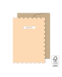 Deze FSC® gecertificeerde wenskaart in peach kleur heeft een speelse kartelrand en een venster met de tekst Merci. Binnenin staat Merci in goudfolie gedrukt. Inclusief bruine kraft envelop. Verpakt per 6 stuks, ideaal voor jouw winkel of webshop.