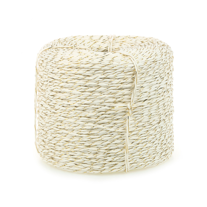 Creëer een natuurlijke uitstraling met ons Paper Twist touw in White/Gold. Met een dikte van 1 mm en een lengte van ±400 meter is dit papieren touw perfect voor het verpakken van geschenken. De subtiele gouden glans voegt een vleugje glamour toe aan je presentaties. Kies voor stijl en duurzaamheid met House of Products.