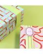 Maak je cadeaus extra stijlvol met deze toonbankrol inpakpapier van 150 meter. Het moderne dessin toont elegant gekromde lijnen in limegroen, paars, roze en rood op een nude ondergrond. De limegroene achterzijde geeft een frisse en speelse finishing touch. Het stevige en soepele papier rolt soepel af en is ideaal voor dagelijks gebruik in je winkel of achter de toonbank. Perfect voor luxe cadeaus, geschenkpakketten of speciale bestellingen. Combineer het inpakpapier met bijpassend lint of stickers voor een complete, professionele uitstraling. House of Products levert duurzaam en stijlvol inpakmateriaal voor winkels en webshops.