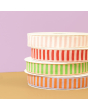 Elegant stoffen lint van 15 mm breed met strepen in beige en lichtroze. Lengte 15 meter. Perfect voor een subtiele, zachte afwerking van je cadeaus.