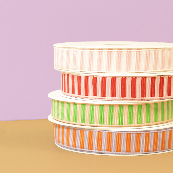 Stijlvol stoffen lint van 15 mm breed met strepen in roze en rood. Lengte 15 meter. Perfect om je cadeaus een kleurrijke touch te geven.