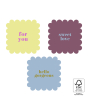 Wist je dat onze cadeaustickers zijn gedrukt op FSC® gecertificeerd papier en dat ook de backing waar de cadeaustickers op zijn geplakt FSC® gecertificeerd is? De lijm van de sticker is tevens op waterbasis.