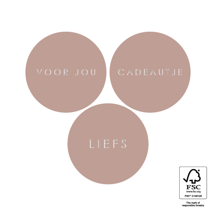 Personaliseer je verpakkingen met onze Tekst (NL) Silver - Taupe stickers op rol. Met een Ø 35 mm formaat en 250 stuks per rol, voegen deze zilveren Nederlandse tekststickers een elegante touch toe aan je productpresentatie. Duurzaam en FSC®-gecertificeerd, maken ze je merk nog aantrekkelijker.