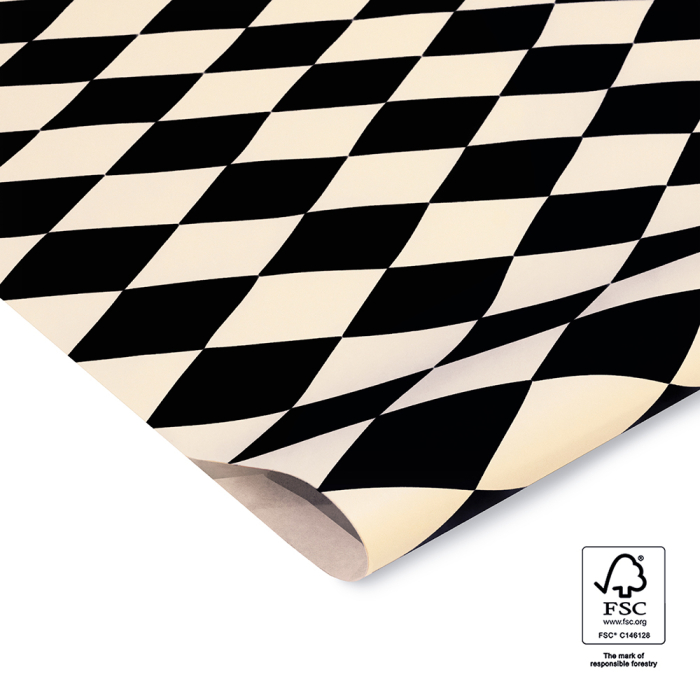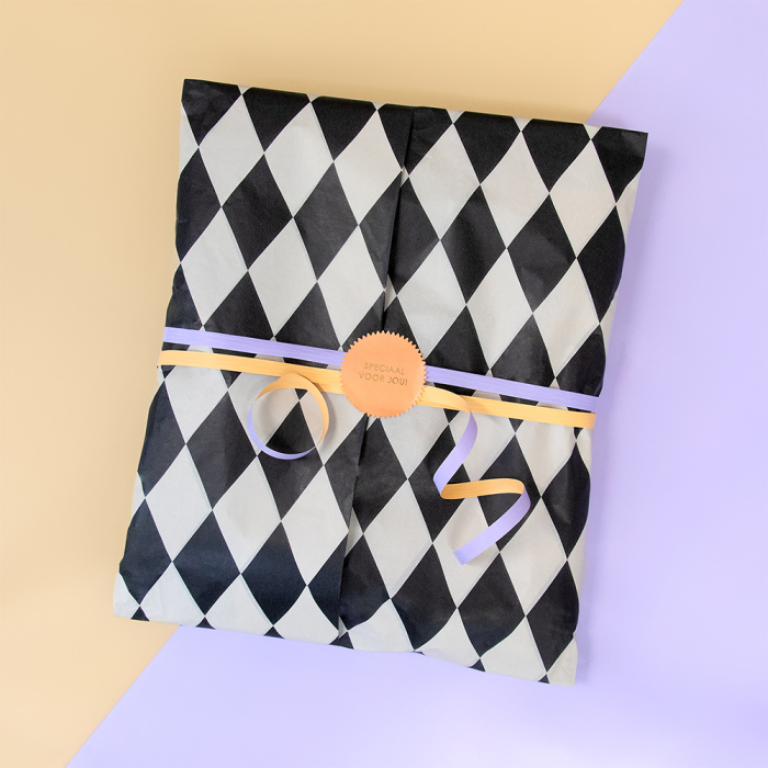 Dit vloeipapier met een Harlequin-patroon in tijdloos zwart en beige geeft uw verpakkingen een stijlvolle en opvallende uitstraling. Het papier is 27 gram per vierkante meter, 50 x 70 cm groot en verpakt per 200 vellen. Het ontwerp combineert klassiek met modern, ideaal voor exclusieve producten. Liever een subtieler patroon? Probeer dan het ‘Stripe’ papier in Jade Green/Mint.