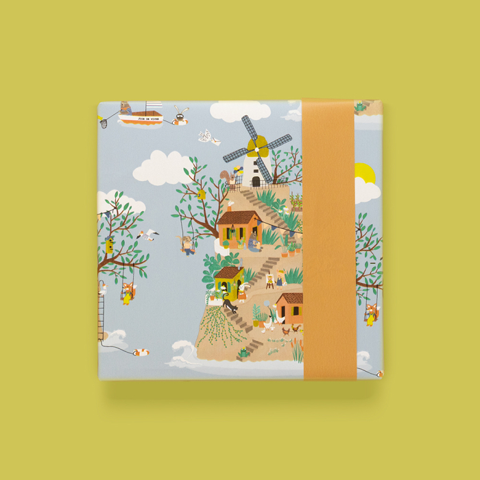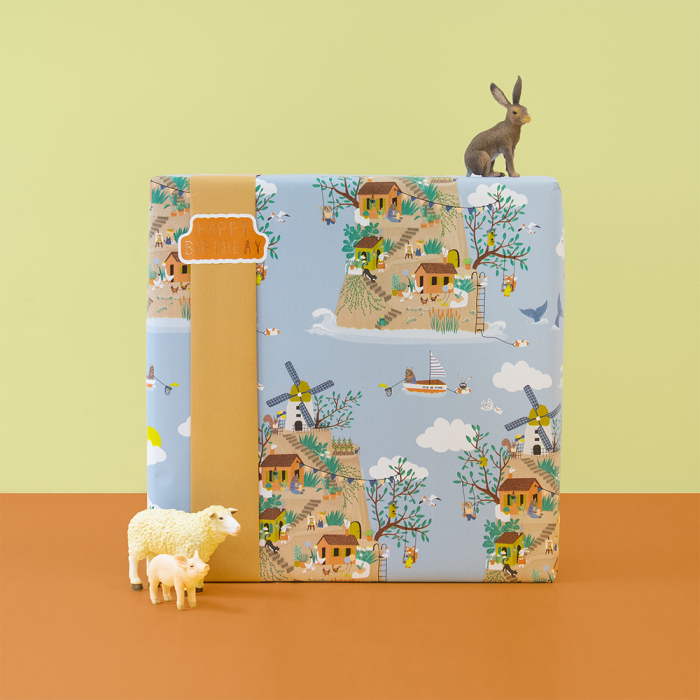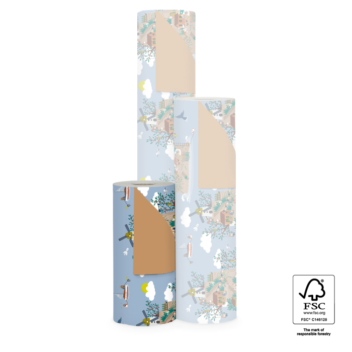 Verpak je cadeautjes sfeervol en vrolijk met onze toonbankrol van 150 meter inpakpapier. Het design is speciaal voor kinderen en bevat gedetailleerde wereldtafrelen in natuurlijke kleuren. De blauwe ondergrond wordt verrijkt met details in taupe, groen, geel en cognac. De taupe achterzijde zorgt voor een verrassend contrast. Perfect voor elke gelegenheid en feestdag. House of Products levert duurzaam en FSC®-gecertificeerd inpakpapier, met bijpassende stickers en linten. Zorg ervoor dat je klanten blij worden van prachtig verpakte cadeaus die ook nog eens milieuvriendelijk zijn.