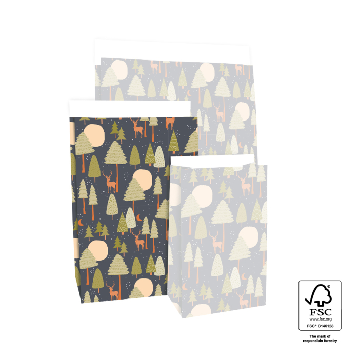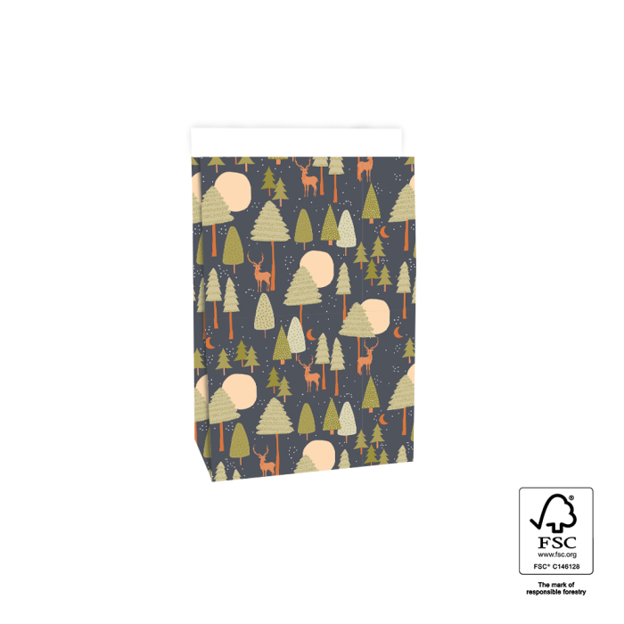 Verpak kerstgeschenken eenvoudig met medium Holy Night Olive blokbodemzakken. De sluitflap van 3 cm sluit snel en betrouwbaar. FSC® gecertificeerd.