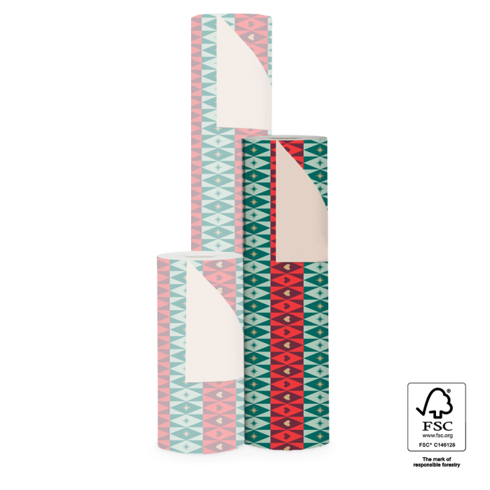 Maak je wintercadeaus extra bijzonder met deze toonbankrol van 150 meter inpakpapier van House of Products. Het grafische ontwerp in kerstkleuren rood en groen met gouden details geeft een feestelijke en stijlvolle uitstraling. De beige achterzijde maakt het papier veelzijdig en makkelijk te combineren. Dit FSC®-gecertificeerde inpakpapier is duurzaam en perfect voor winkels en webshops die kwaliteit en milieu belangrijk vinden. Combineer het met onze bijpassende linten en stickers voor een complete verpakking. Zo pak je cadeaus in die indruk maken op jouw klanten, en waarmee je duurzaamheid uitstraalt.